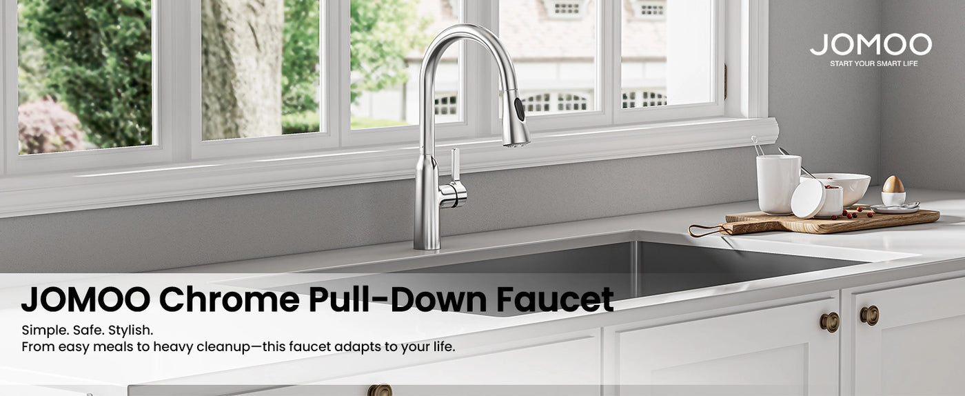 JOMOO Chrome Pull Down Kitchen Faucet, Dual Mode Single Handle Sink Faucet